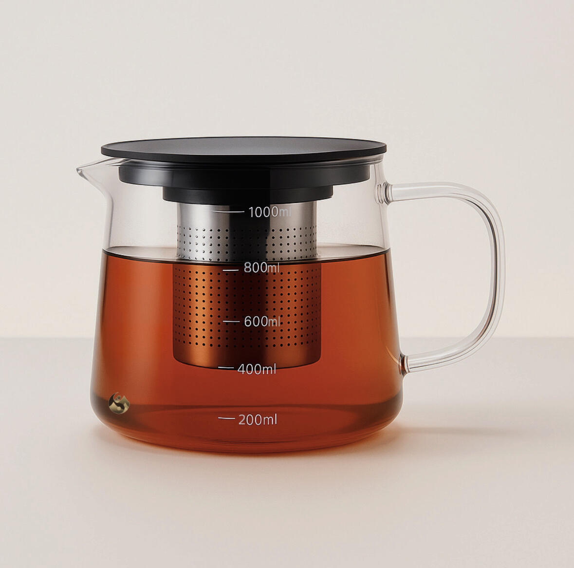 | Chất liệu | Bình thủy tinh borosilicate, kèm bộ lọc trà bằng inox có thể tháo rời. Nắp nhựa PP. |